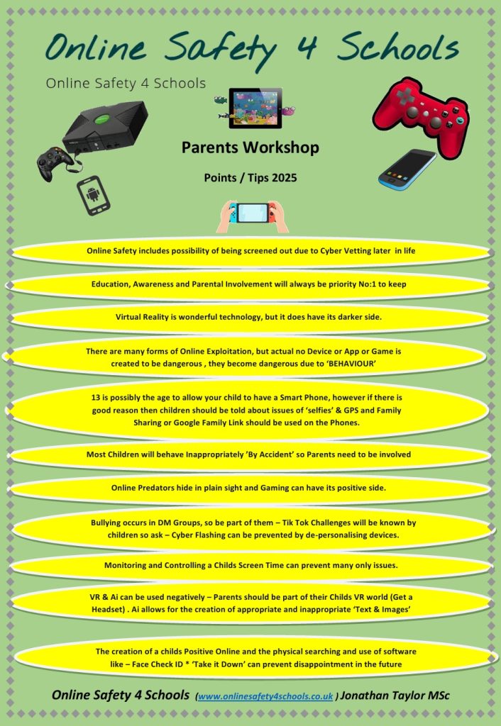 Tips & Points from Parents Workshop 2025 Posted on November 9, 2025November 9, 2025 by Online Safety 4 Schools